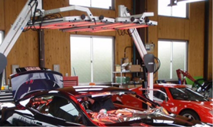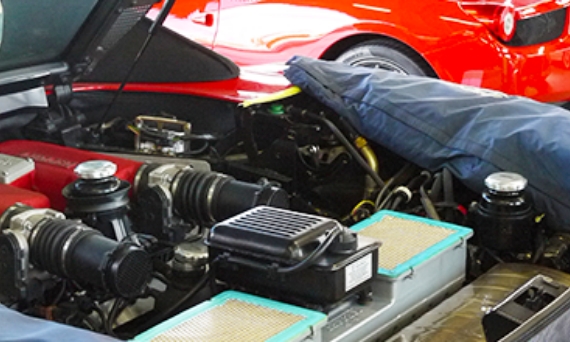 塗装作業は非常にデリケートでセンスのいる工程です。密閉されたクリーンルームと、正確な温度管理と共に、塗装ミストの屋外への飛散を防ぐ排気装置を兼ね備えた塗装ブースで、お客様の大切なお車の完璧な復元と環境へのECOに貢献しています。