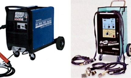 YASHIMA製「車体整備用MIG溶接機」は、この一台で「鋼板」「高張力鋼板」「アルミ」「ステンレス」「ブレージング」など、自動車板金に必要な全ての溶接に完全対応。その他、各種機材を揃えています。