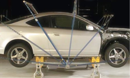 ミリ単位で正確な三次元立位修正が可能なフレーム修正機です。損傷部位を正確に測定出来ますので、車体側の寸法のズレなのか、足回りの損傷なのかが正確に解り、余計な出費も抑える事が出来ます。大きな事故によるフレームの歪みも完全な復元が可能です。