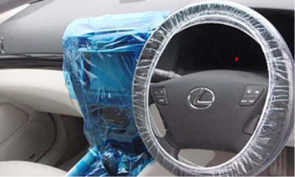 大切なお客様の愛車をお預かりするために、入庫時にシート、ハンドル、コンソールパネル等に保護テープを貼り付け、作業時のホコリ、キズ等から守り、安心してお渡し出来るように、徹底した室内マスキング作業を行っています。