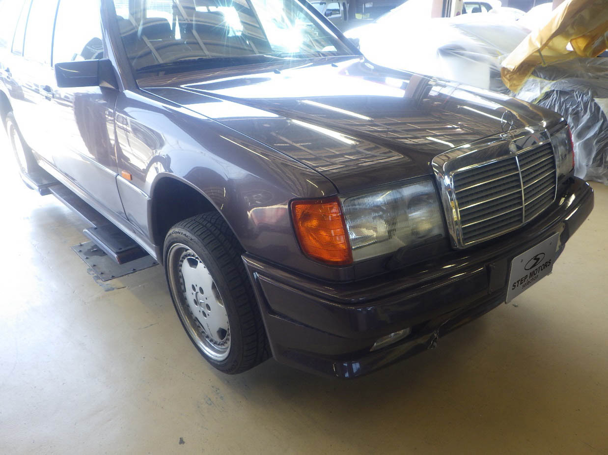 【板金塗装】兵庫県洲本市、O様、1993y、メルセデスベンツ、Eクラス、W124、フロントバンパー損傷へこみ修理レポートです!ありがとうございました。