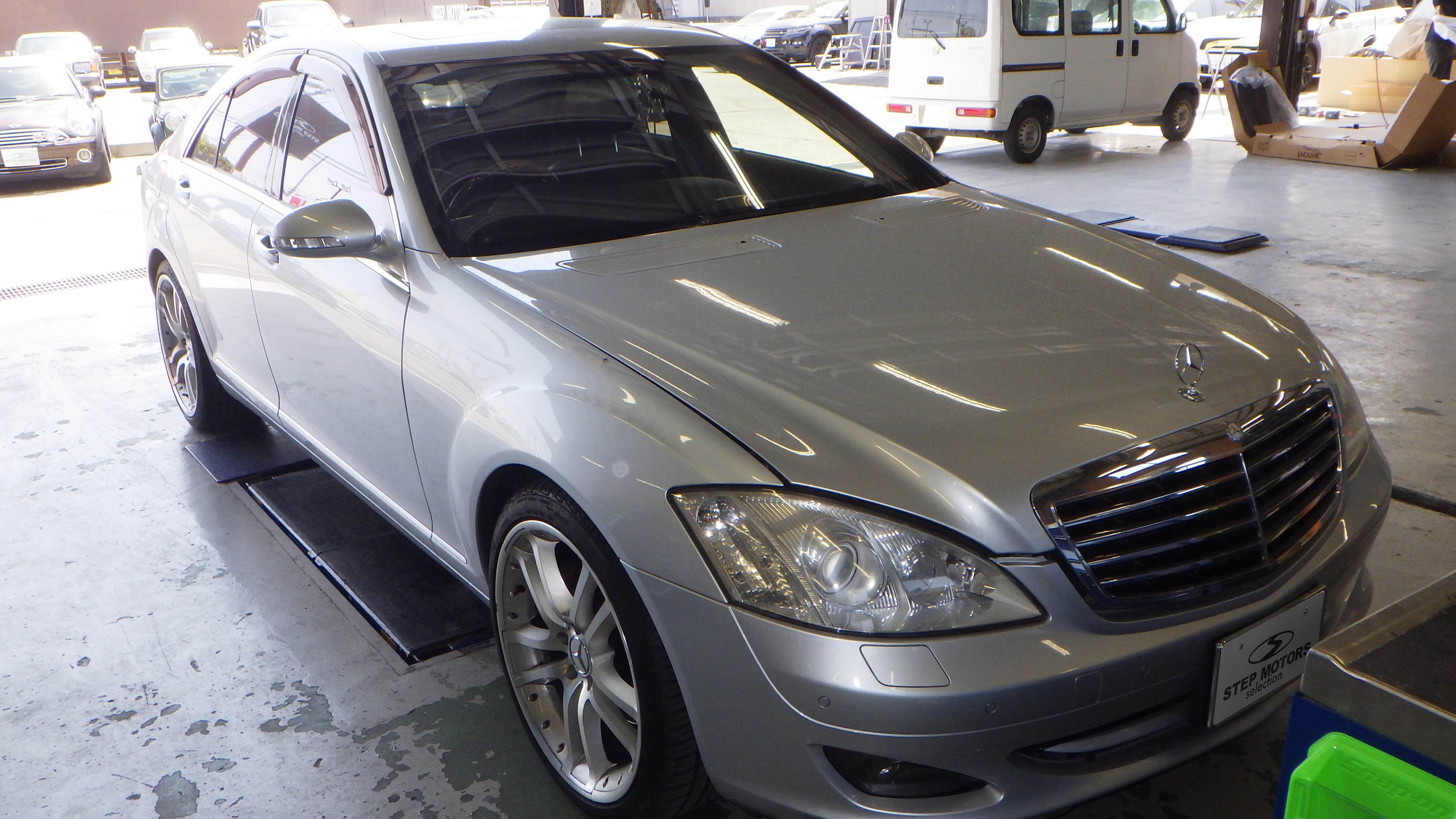 【鈑金塗装】【事故】兵庫県姫路市、N様、2006y、メルセデス・ベンツ、Sクラス、W221、フロントバンパーフロントフェンダーエンジンフード損傷修理レポートです!ありがとうございました。