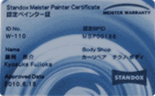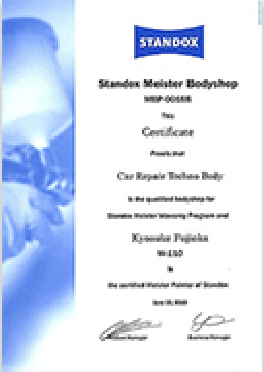当工場は、世界的に認められている塗料メーカー「STANDOX」から、マイスターBPの認定を受けています。